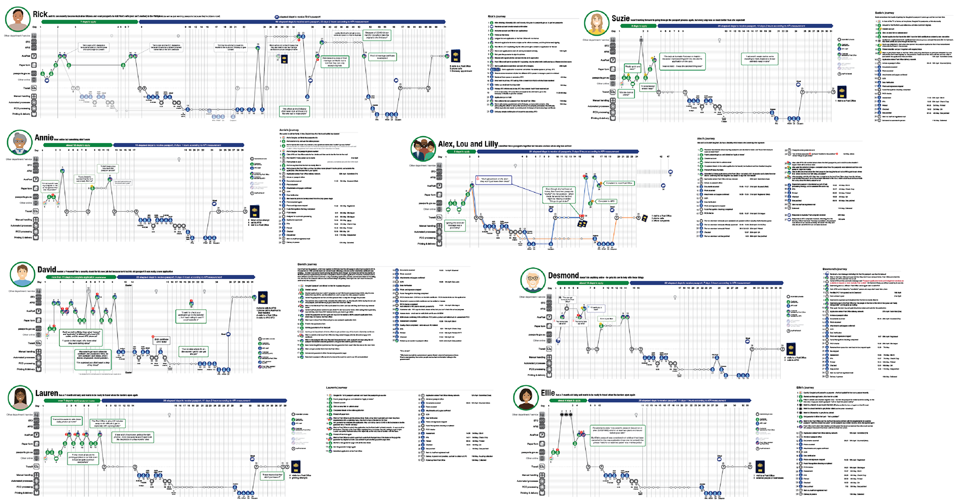 Starting with primary customer research, gaining insights from other nations and agencies, and running a comprehensive series of staff workshops, I delivered a clear and executive-endorsed vision for an updated passport digital service, using Guiding Principles, Customer Journeys and validated customer and staff experience prototypes.